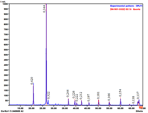 Figure 4 below shows the X-ray diffraction pattern of Sherabad quartz sand.