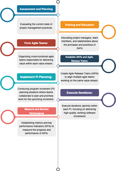 As we can see in implementing scalable agile frameworks (SAFe) within Kaspi.kz, several key steps are involved to ensure a successful transition to agile practices at scale. Initially, it’s crucial to assess the organization’s readiness for SAFe adoption, including evaluating its existing culture, structure, and Agile maturity. This assessment helps identify potential challenges and areas where SAFe can provide the most value. Following this, comprehensive training and education are essential to ensure that all stakeholders, from executives to team members, understand the principles, practices, and roles within the SAFe framework.
