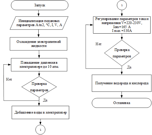 Блок-схема на рисунке 2 описывает алгоритм процесса электролиза: