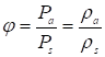 where Pa and Ps – are the actual and saturated partial pressures of water vapor, ρa and ρs – are the corresponding densities values.