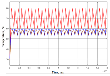 В данной статье рассмотрены исследования математического моделирования и управления процессом сушки термолабильных продуктов в периодической сушильной камере. Разработано подробное математическое описание кинетики сушки, включающее динамику тепло- и массопереноса. Модель проверена экспериментальными данными, подтверждающими ее точность. Синтезирована цифровая система управления на основе ПИД- регулятора, для оптимизации основных параметров, температуры и влажности, что обеспечивает качество готовой продукции и энергоэффективность установки. Предложенная система управления демонстрирует надежную работу, а теоретические результаты тесно согласуются с экспериментальными результатами.