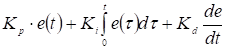 A PID controller is implemented with proportional kp, integral ki, and derivative kd components: