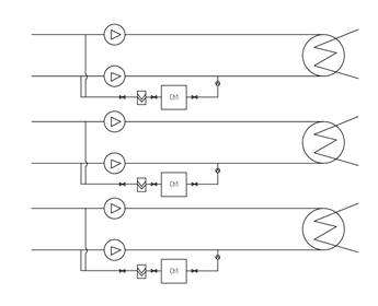 Чиллеры установлены параллельно градирням на линии всаса циркуляционных насосов, как показано на схеме подключения рис.1.