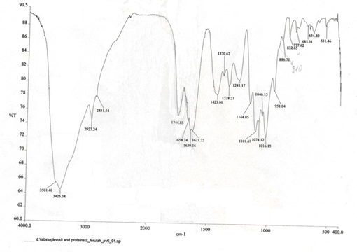 Структуру извлеченных пектинов анализировали с помощью инфракрасной (ИК) спектроскопии. ИК-спектры получали с использованием фурье-преобразования инфракрасной (ФТИР) спектрометрии, и характерные пики исследовали и анализировали.