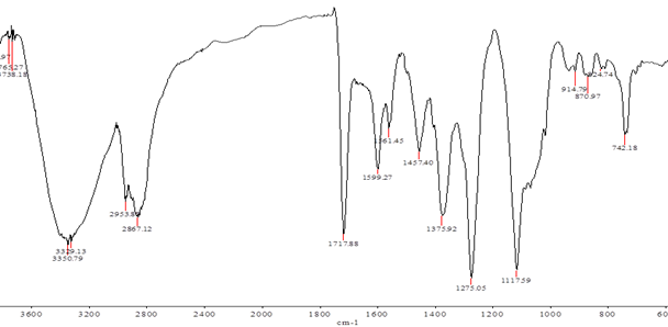 Определены строение, элементный состав и кванто-химические константы синтезированного вещества. Строение синтезированного соединения найдено методам ИК–спектроскопии, а состав определен элементным анализом (рис.1).