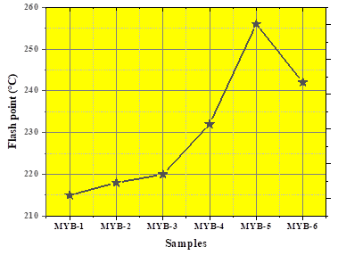 - A sharp and significant increase is observed from MYB-4 to MYB-5, reaching the maximum flash point at MYB-5.