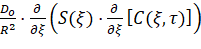 qξ S (ξ)- qξ +dξ·S (ξ+dξ) = (∂C/∂τ) dV (3)
