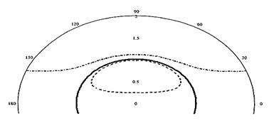 Формула (10) - внутренняя функция тока. Формула (11) - внешняя функция тока. Геометрическое изображение функций тока представлено на графике (рисунок 1). Знание гидродинамического поля скоростей течения внутри капли позволяет перейти к решению задачи экстракции из капли, т.е.к определению поля концентраций в дисперсной фазе (капле), что и было сделано в дальнейшем.