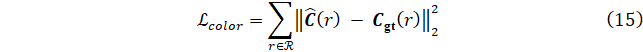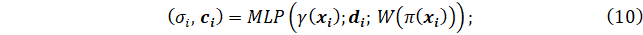 is a number of base frequencies. We used 6 base frequencies during train and evaluation as in pixelNeRF default setup. Finally, we pass all positionally encoded position, along with the view direction and corresponding feature vector into the NERF MLP: