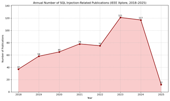 Figure 2. Annual Number of SQL Injection-Related Publications (IEEE Xplore, 2018–2025)