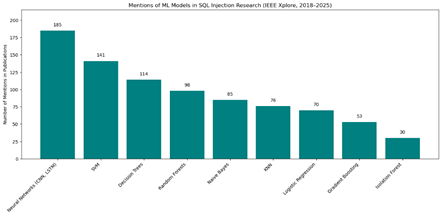 Figure 3. Distribution of Machine Learning Models Used in SQLi Detection (IEEE Xplore, 2018–2025)