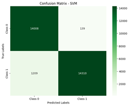 In addition to these metrics, a confusion matrix was used to visualize the number of true positives, true negatives, false positives, and false negatives for each model. This helps interpret the specific types of errors made by each classifier.