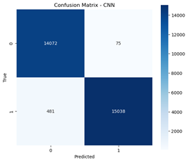 In contrast, Convolutional Neural Networks (CNNs) have demonstrated significant success in text classification tasks by automatically extracting hierarchical and semantic patterns from sequences of text. Prior research has highlighted the effectiveness of CNNs in cybersecurity applications, including intrusion detection and spam filtering. For example, Menaka et al. [7] proposed a hybrid CNN-RF model for SQLi detection, achieving 95.67% accuracy, while Shahbaz et al. [8] achieved over 96% precision using a CNN-based model trained on SQL query datasets.