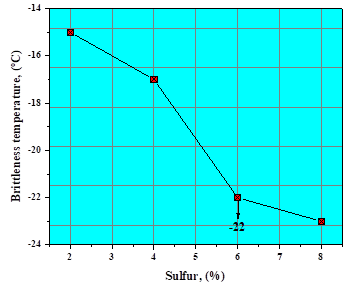 Figure 4. Effect of sulfur content on the brittleness temperature of modified bitumen