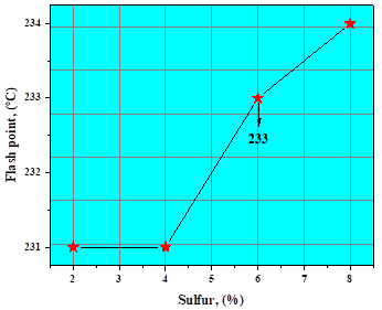 Figure 5. Flash point values of sulfur-modified bitumen samples