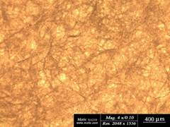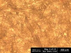 Рисунок 1. Микрофотографии бумаг, в составе которой хлопковая целлюлоза в композиции с целлюлозой из стеблей сои, полученных на оптическом микроскопе Motic BA210