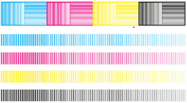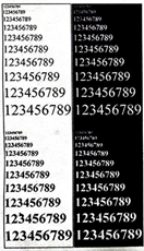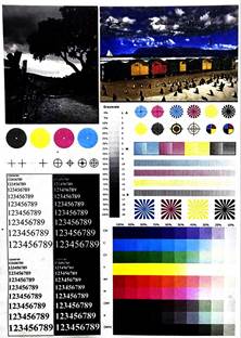 Оценка параметров дается в баллах исходя из того, какая по счету строка с минимальным кеглем четко пропечаталась на странице. Если мельчайшие символы разглядеть не удается, можно использовать вспомогательные приборы, такой как лупа или микроскоп. Оценку качества печати текста можно дать и визуально. В этом случае подсчитывается число видимых переходов между соседними плашками. В идеале их должно быть 20, и чем переходов меньше, тем хуже. Для оценки разрешающей способности принтера, характеризующего максимальное количество точек на квадратный дюйм, использовали растровые точки различного размера и цвета (рис.3, б).