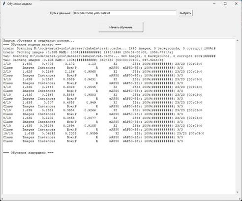 YOLOv7 показывает наиболее стабильную динамику улучшения метрик в процессе обучения. YOLOv11 на ранних этапах демонстрируют колебания метрик, однако впоследствии достигает стабильно высоких значений. В целом, версия YOLOv11 представляет собой наиболее сбалансированное решение, сочетающее высокую производительность и точность обнаружения дефектов при минимальных затратах времени на обучение. Это делает её предпочтительным выбором в рамках задачи определения дефектов.