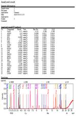 Результаты анализа показывают, что образец желтого гранита содержит 71,5% оксида кремния, 12,6% оксида алюминия и 11,15% оксидов натрия и калия. Таким образом, использование каолина для регулирования соотношения оксидов кремния и алюминия достаточно для получения цеолита, и данный образец гранита может быть использован в качестве сырья для синтеза цеолита.