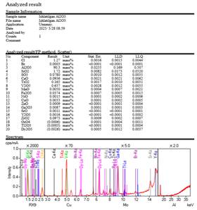 Результаты анализа RFA представлены на рисунке 2 и в таблице 2 ниже. Полученные в результате рентгеновского дифракционного анализа картины порошковой рентгеновской дифракции Ритвельда были первоначально проанализированы с использованием программного обеспечения Profex Rietveld с открытым исходным кодом для ясности. Минеральные фазы были идентифицированы с использованием базы данных минералов, включенной в программное обеспечение, а также собственной базы данных. Следующие данные представлены в виде модели уточнения Ритвельда, основанной на данных наблюдений.
