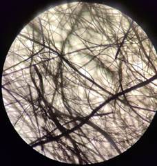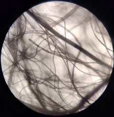 Так же приведён микроскопический анализ этих материалов. Микроскопический анализ показал, что волокна овчины (шерсти) имеют характерную для животного происхождения структуру, состоящую из мелких чешуек, покрывающих основное волокно. Эти чешуйки способствуют хорошей сцепляемости волокон, что, в свою очередь, улучшает теплоизоляционные свойства материала за счет захвата воздуха между ними. Структура шерстяных волокон также способствует высокой гигроскопичности, так как шерсть эффективно поглощает и удерживает влагу. Синтетические волокна полиэстера имеют гладкую и стабильную поверхность, что придает материалу устойчивость к внешним воздействиям, таким как износ, истирание и растяжение. В микроскопическом анализе полиэстер показал более однородное распределение по всей массе материала, что способствует стабильности его структуры при длительном использовании [7-8].