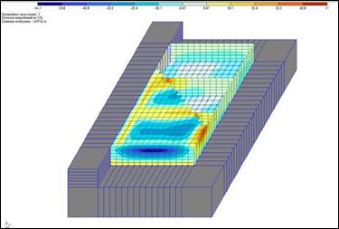 3. Расчеты выполнялись на основе разработанных пространственных моделей заглубленного здания, в которых учитывалась совместная работа конструкций здания с грунтовым массивом.