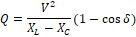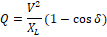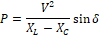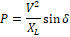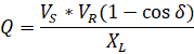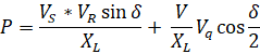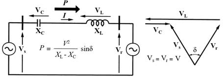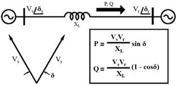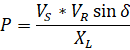 где VS – напряжение на отправляющем конце, VR – напряжение на принимающем конце, δ – фазовый угол между напряжениями на отправляющем и принимающем концах. XL – последовательное реактивное сопротивление линий передачи энергии, VS – мощность, передаваемую на фазу, P и Q – активную и реактивную мощности соответственно.