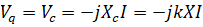 где Vc – вектор напряжения, который компенсируется посредством ввода, I – ток в линии, Xc – реактивное сопротивление последовательного конденсатора, X – реактивное сопротивление линии, и наконец, k=Xc/X – степень последовательной компенсации.