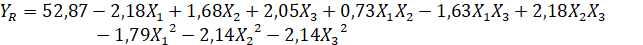 В результате данного эксперимента можно получить регрессионную модель следующего общего вида: