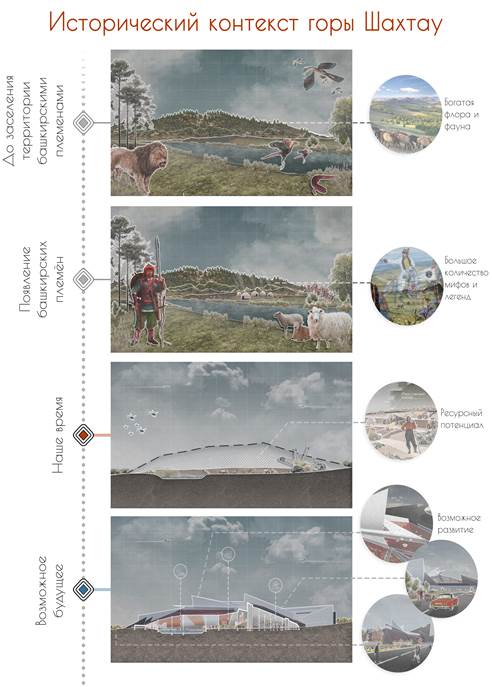 Акцентом рекреационной зоны может стать проектируемый туристический хаб на месте карьера - бывшего шихана Шахтау, который займет свое место в цепочке памятников природы - шиханов Тратау, Куштау, Юрактау.