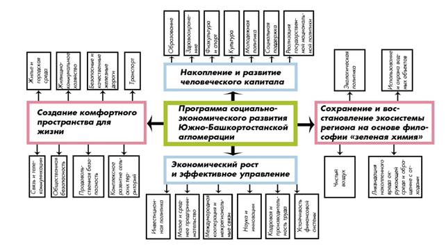Рисунок 3 Задачи программы социально-экономического развития Южно-Башкортостанской агломерации. (Авторская схема)
