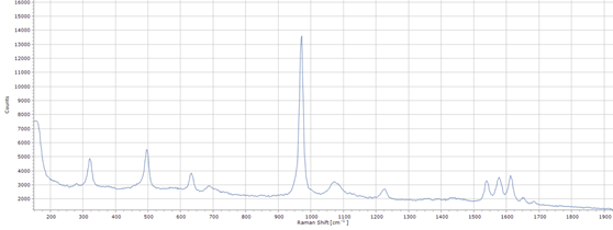 Для выявления характерных колебаний гидрохлорида аминогуанидина был записан спектр комбинационного рассеяния в диапазоне 100–1900 см⁻¹. В спектре наблюдается ряд выраженных полос, соответствующих характерным колебаниям функциональных групп, входящих в состав молекулы. Ниже приведена расшифровка основных пиков спектра: