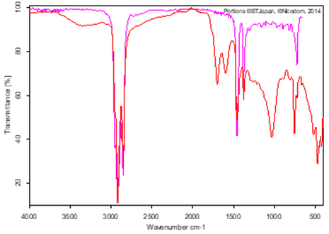 - Strong absorption peaks in this range are associated with aliphatic CH2 and CH3 stretching vibrations.