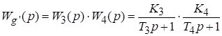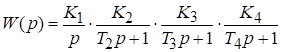 Из представленной структурной схемы видно, что соединения звеньев соответствуют последовательному подключению. Исходя из последовательного соединения звеньев, определим передаточную функцию системы на основе следующего алгоритма. При последовательном соединении звеньев передаточная функция общей системы для n звеньев представляется в виде произведения.