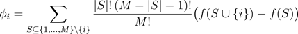 Расчет вкладов признаков (значения Шэпли) по всем подмножествам |