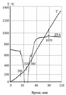 Рисунок 1. Термограмма (кривая ДТА) молотого гидрагиллита. Адаптировано из [4].