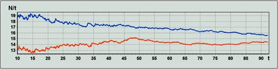 Figure 1. Player activity dynamics (number of actions per minute of possession)