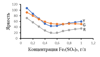 Рисунок 1. Воздействие железосодержащих солей на интенсивности R-, Y-, G-оттенков в исследуемых образцах