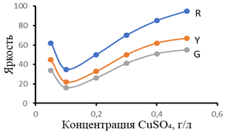 Рисунок 4. Воздействие медьсодержащих солей на интенсивности R-, Y-, G -оттенков в исследуемых образцах