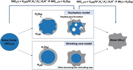 Figure 1. Mechanisms of metal oxide reduction by hydrogen [8]