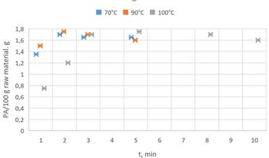 Figure 2. The effect of the microwave temperature extraction on the purity of active components