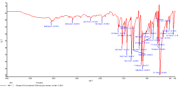 Figure 4. IR spectrum of the synthesized high-intensity nitrogen- and sulfur-containing nickel phthalocyanine pigment (NiSPc)