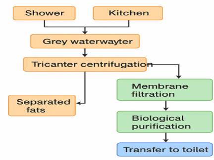 Physicochemical analysis of gray water samples taken from the kitchen and bathroom yielded the following results: As can be seen from the table above, the oil content in gray water was reduced by 95% using a tricanth centrifuge, which made it possible to reuse it.