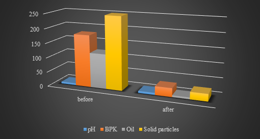 Experimental method - physicochemical analysis of gray water samples was carried out under laboratory conditions (oil content, BPK, solid particles);