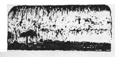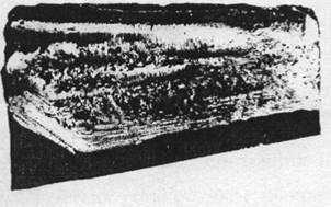 Задир зубьев возникает в случаях нарушения масляной плёнки, а в случае появления металлического контакта между рабочими поверхностями зубьев происходит, нагрев до температуры плавления микрообъёмов металла, приводящий к образованию борозд, расположенных на рабочей поверхности зубьев в перпендикулярном направлении относительно оси колеса. При загрязнённой абразивными частицами смазке твёрдые частицы, попадая в зону контакта зубьев шестерен, под действием нормального давления внедряются в поверхность зубьев и вызывают его износ. На рисунке 2 показана поверхность зуба подверженной задиру с участием абразивных находящегося в масле заднего моста трактора МТЗ-82.
