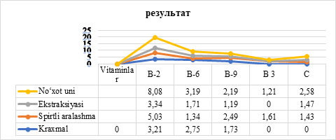 In this article, the content of water-soluble vitamins in legumes (Kabuli variety) was determined using high-performance liquid chromatography . The article presents data from laboratory studies on the results of an analysis of the possibility of increasing the nutritional value of a wide range of flour products through the use of isolated carbohydrates as an effective high-quality raw material from available resources in the food industry, pharmaceuticals and bioenergy.