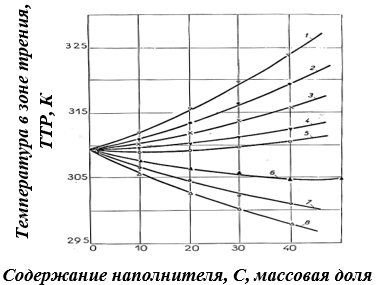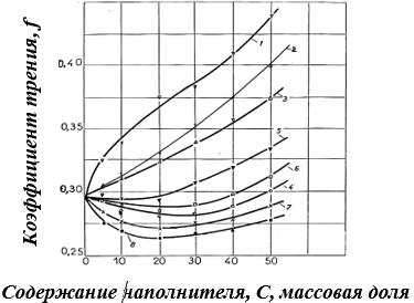 Снижение коэффициента трения композиционных полипропиленовых материалов, наполненных тальком и каолином, связано с их пластинчатой структурой и мелкодисперсностью. У композиционных материалов, наполненных сажей и графитом, - со сравнительно низкой величиной теплопроводности.