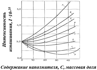 В общем, снижение прочности композиционных полимерных материалов при больших наполнениях, по-видимому, вызвано ускорением процессов разрушения полимерной композиции. В композиционных материалах появляются опасные дефекты.