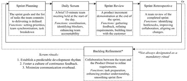 Figure 1. Scrum rituals in the project management cycle, compiled by the author