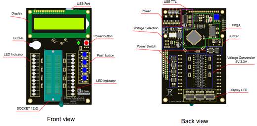 10x2 IC SOCKET: Provides physical connection to the test IC via a 10x2 pin adapter, allowing flexibility in mounting ICs and working with various ICs.